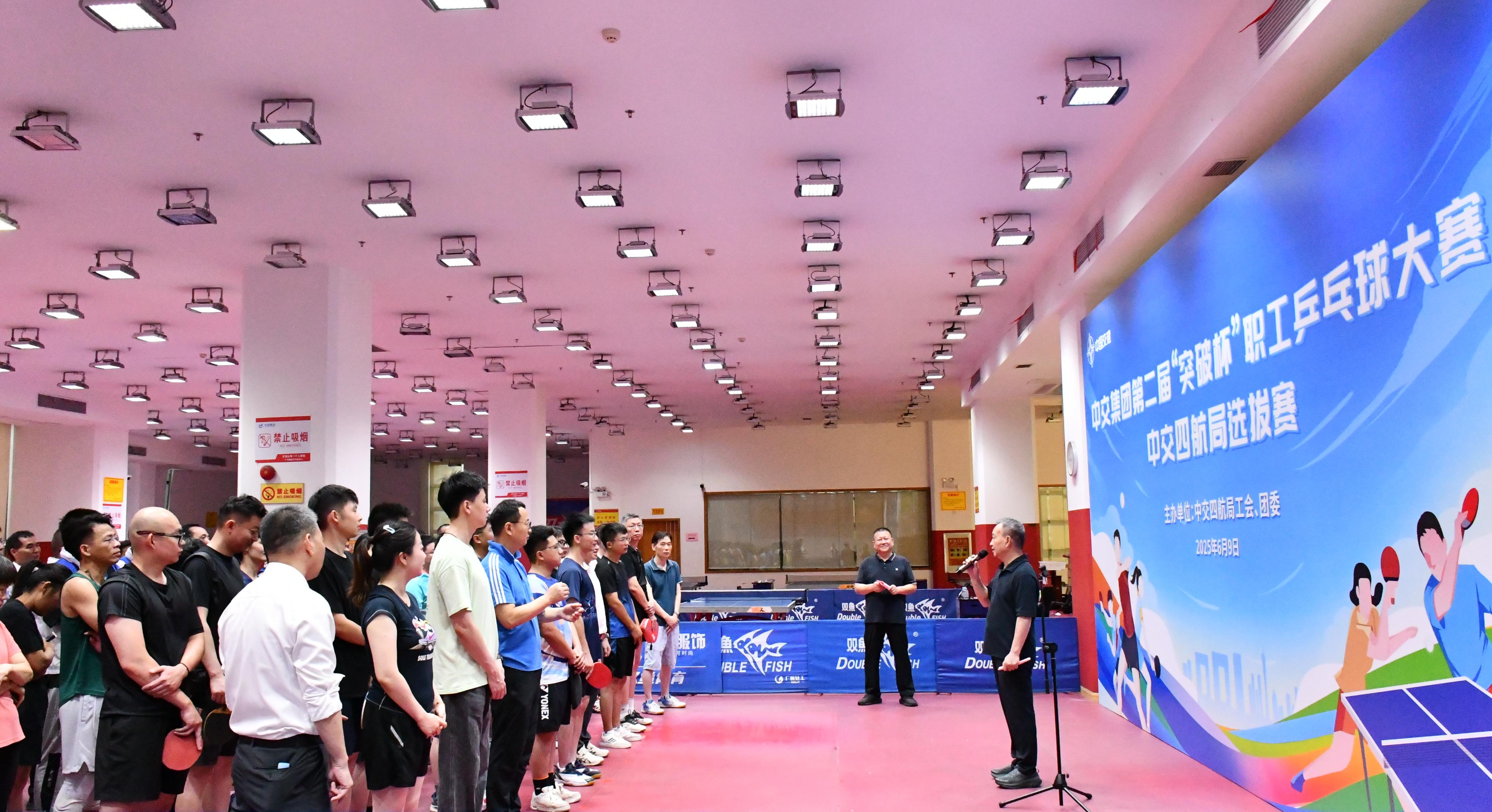 近日,中交集團(tuán)第二屆“突破杯”職工乒乓球大賽四航局選拔賽在穗舉行,四航局黨委副書記、工會(huì)主席曾瑞雄出席活動(dòng),來自四航局本部、所屬12家單位的選手參與角逐。