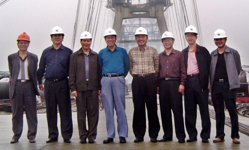 10月8日,在局長梁卓仁的陪同下,中交集團(tuán)公司副董事長陳永寬(左四)視察我局BOT項(xiàng)目湘潭四橋,對(duì)項(xiàng)目建設(shè)所取得的成績表示肯定。