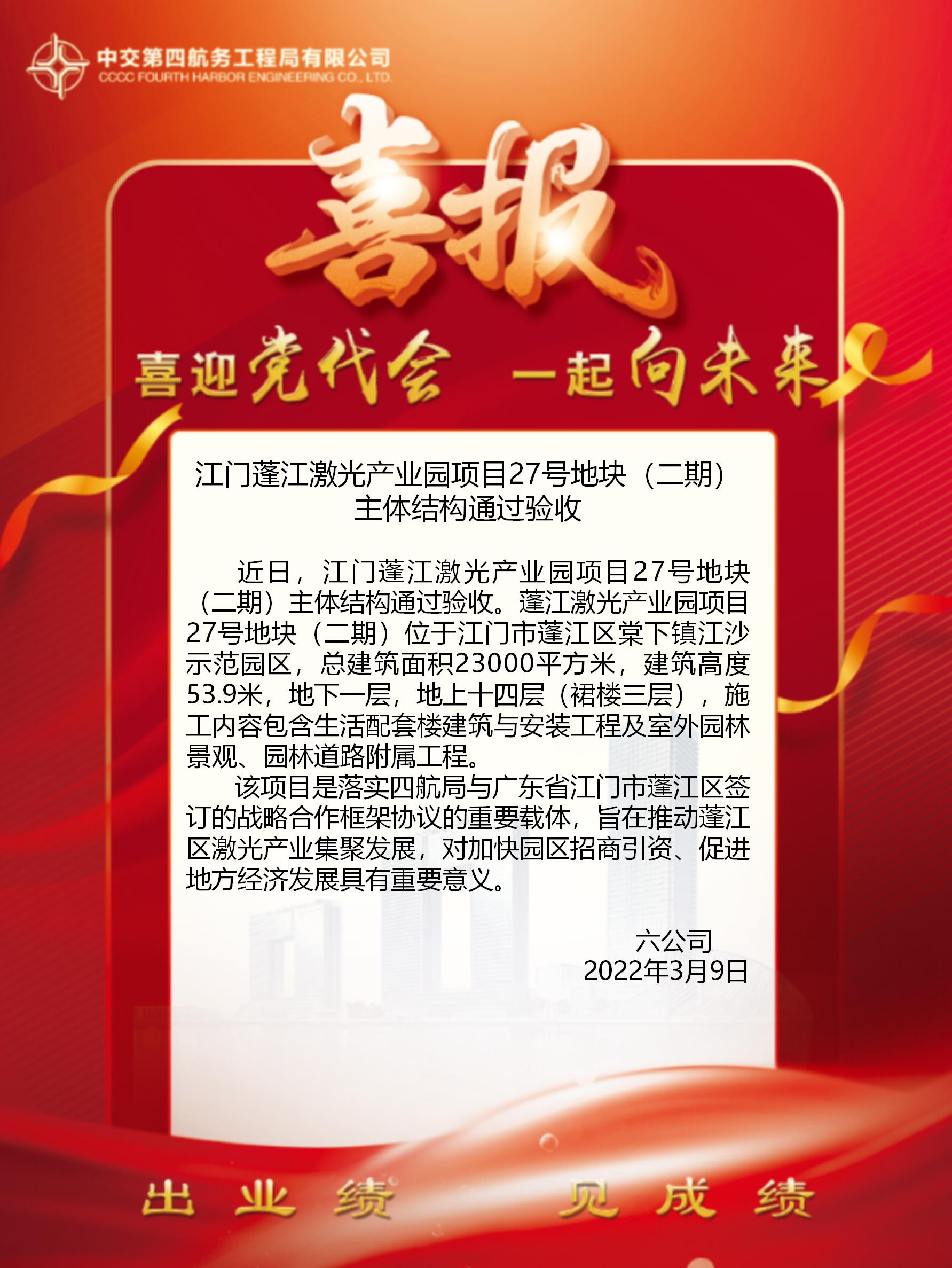 江門蓬江激光產(chǎn)業(yè)園項(xiàng)目27號(hào)地塊(二期)主體結(jié)構(gòu)通過驗(yàn)收