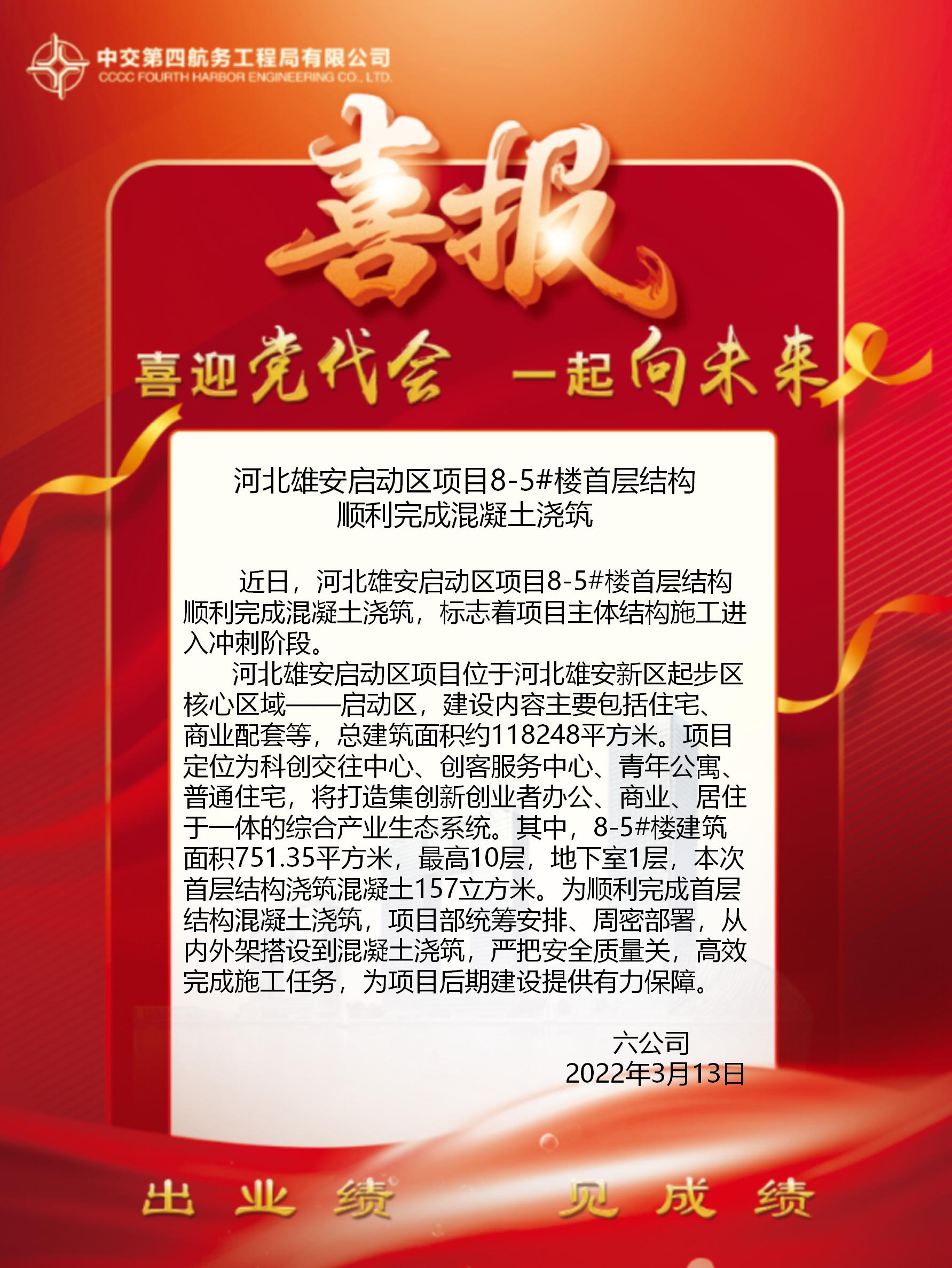 河北雄安啟動區(qū)項目8-5#樓首層結構順利完成混凝土澆筑