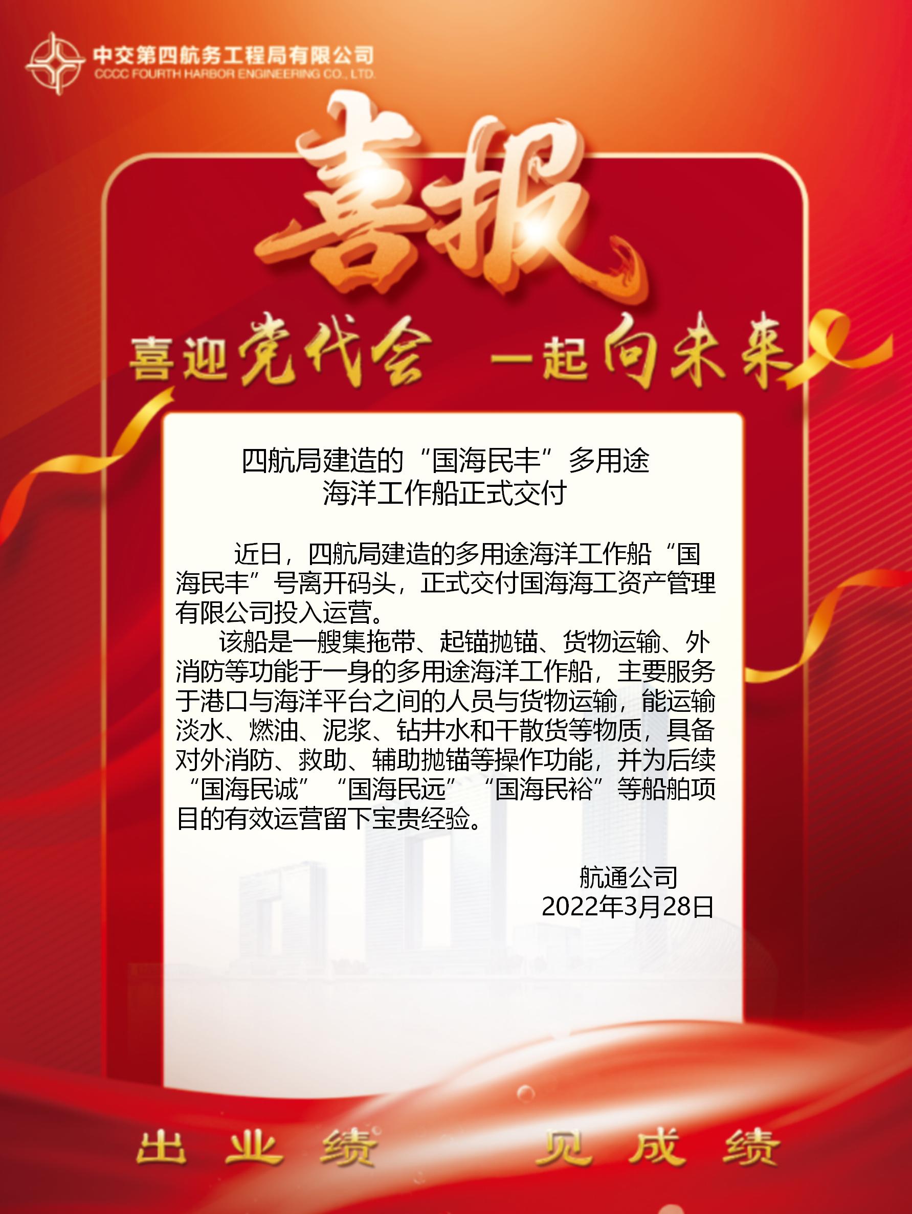 四航局建造的“國海民豐”多用途海洋工作船正式交付