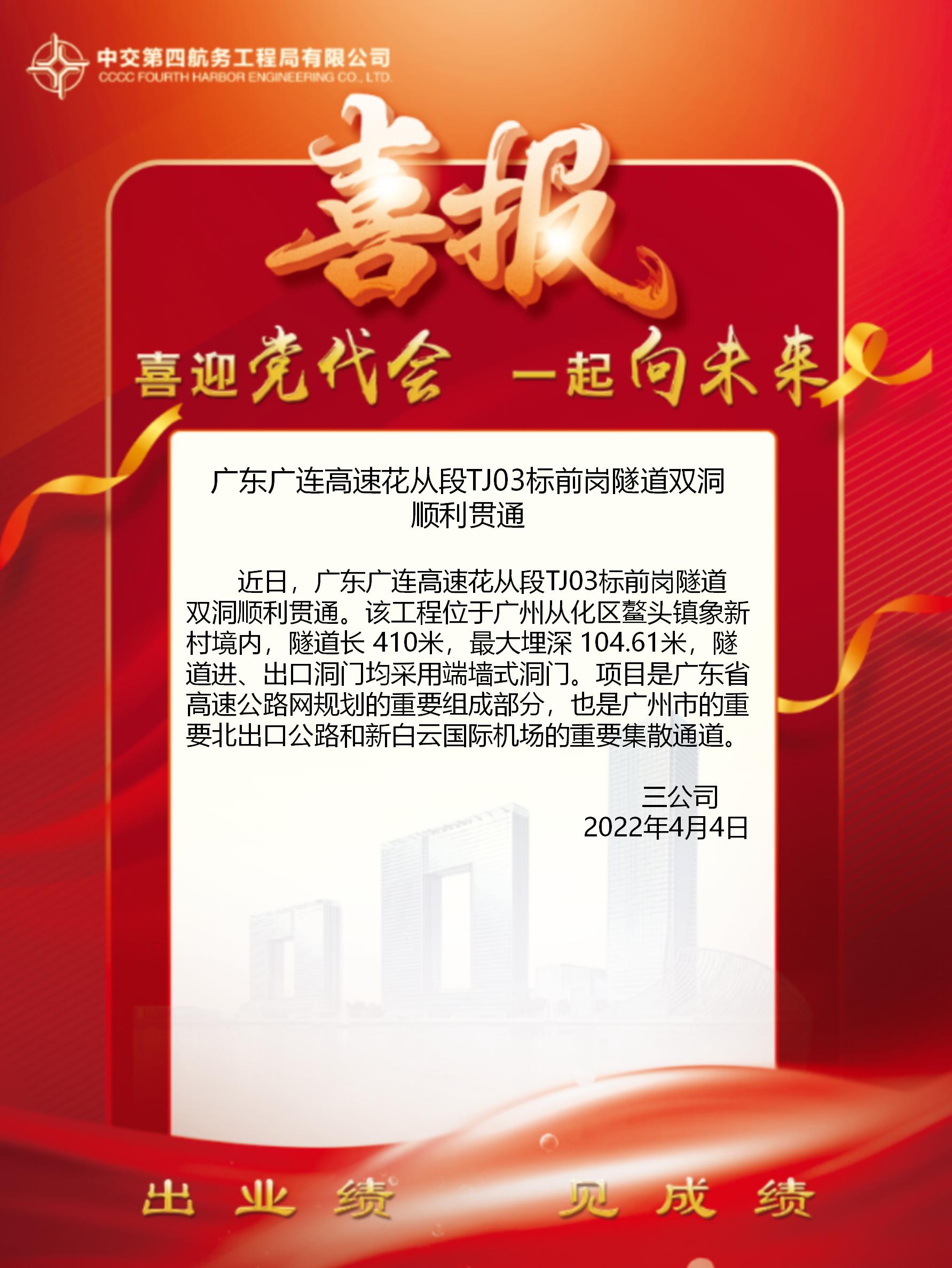 廣東廣連高速花從段TJ03標(biāo)前崗隧道雙洞順利貫通