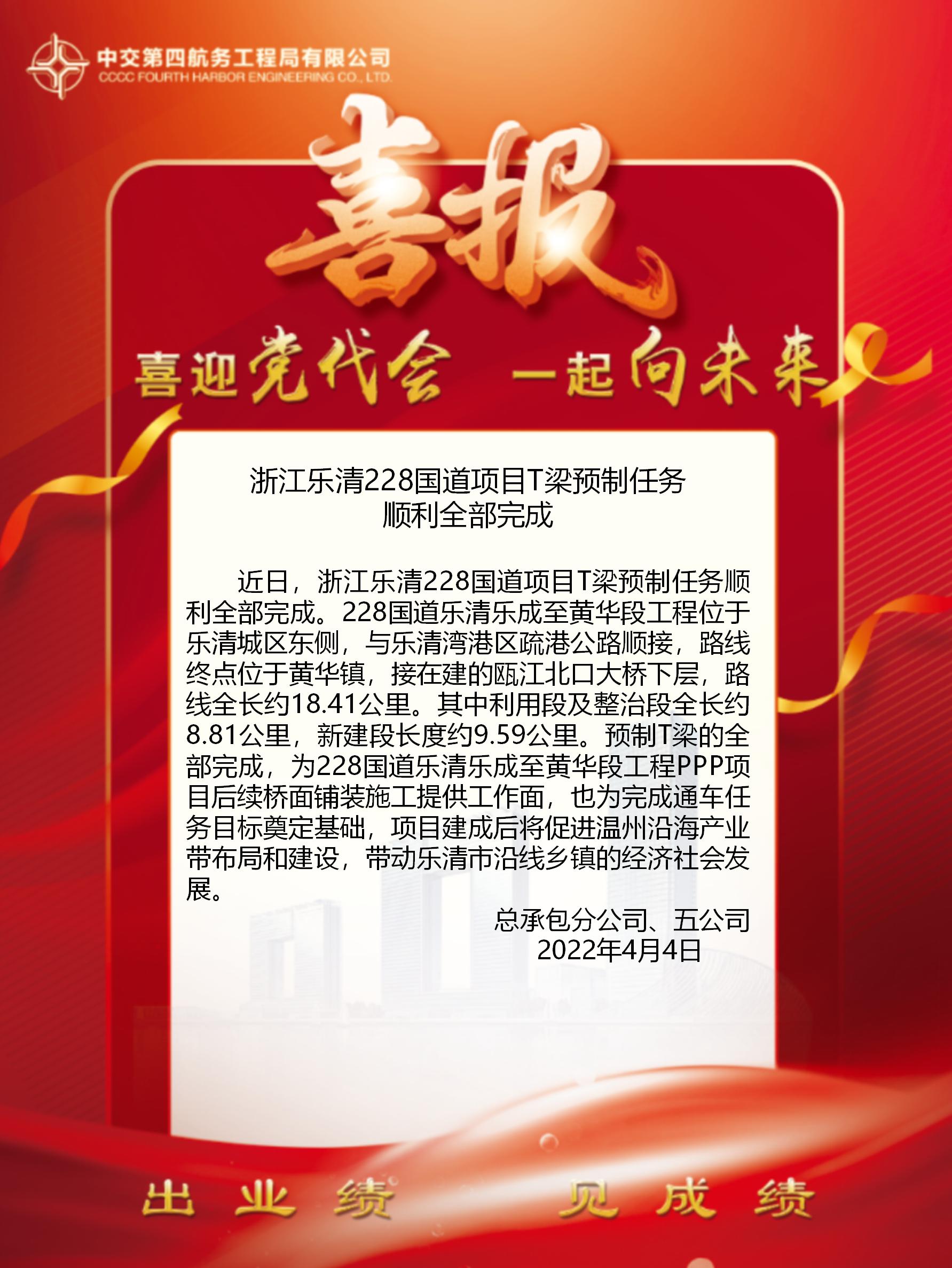浙江樂清228國道項目T梁預(yù)制任務(wù)順利全部完成