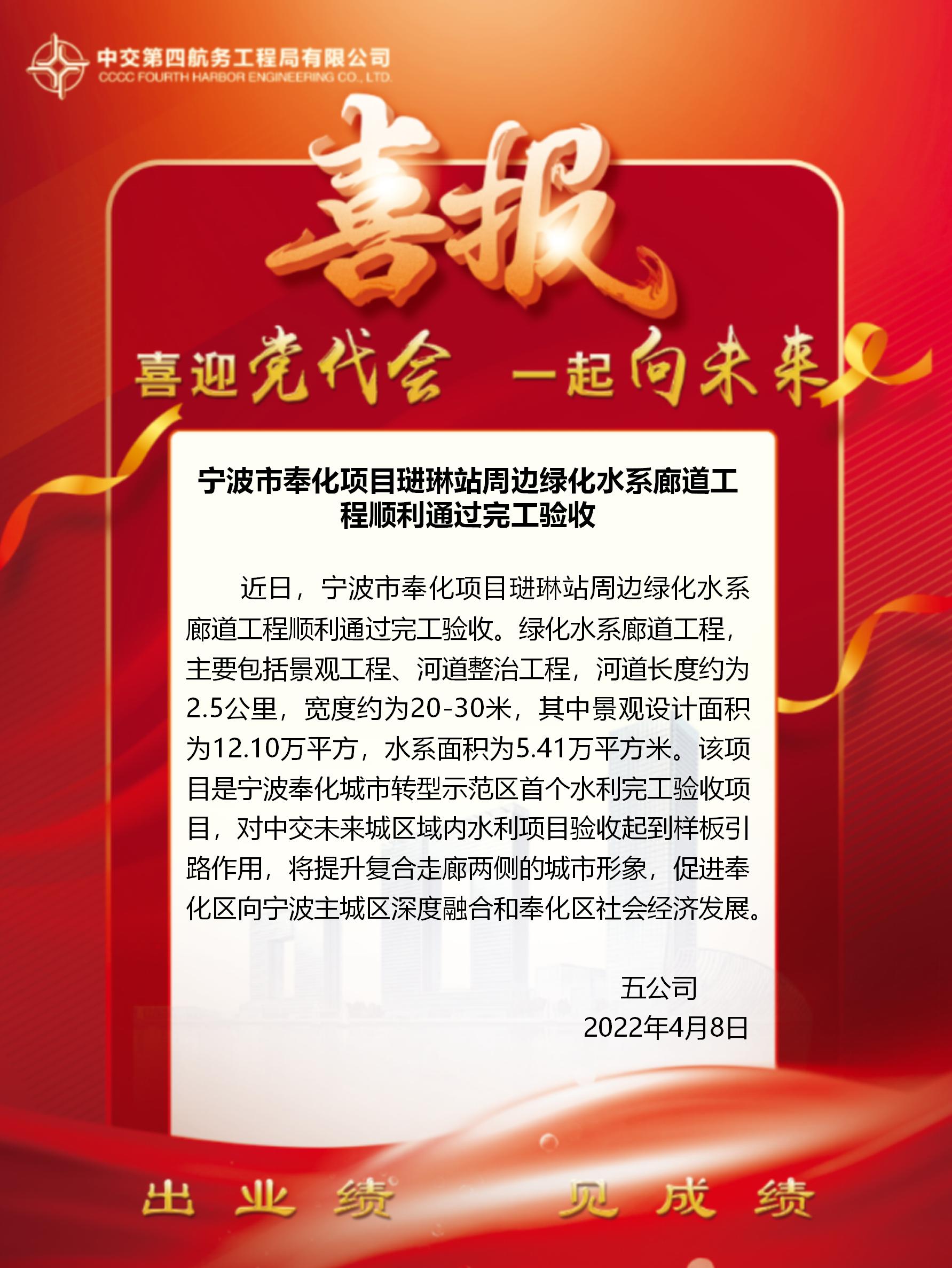 寧波市奉化項目琎琳站周邊綠化水系廊道工程順利通過完工驗收
