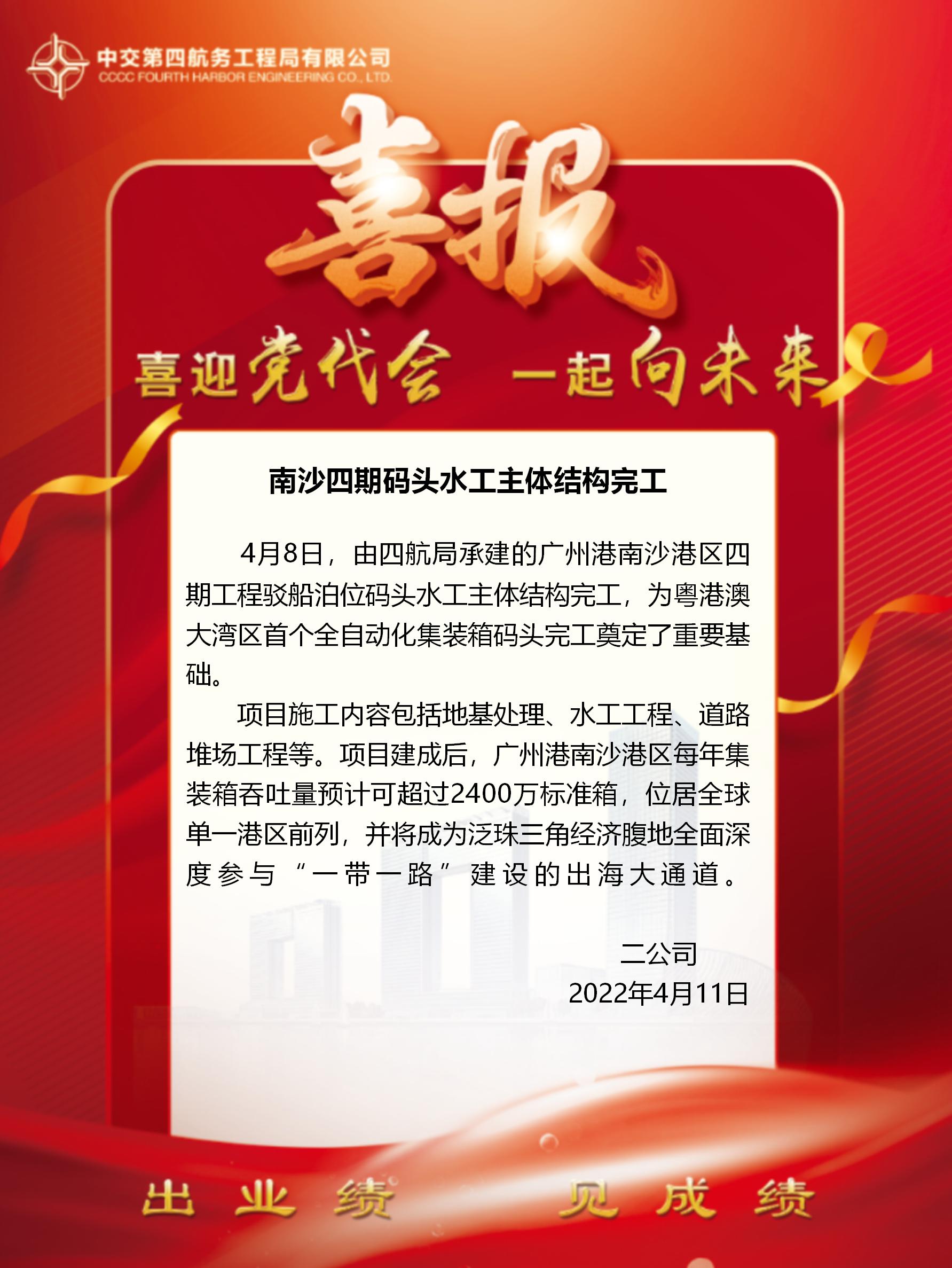 南沙四期碼頭水工主體結(jié)構(gòu)完工