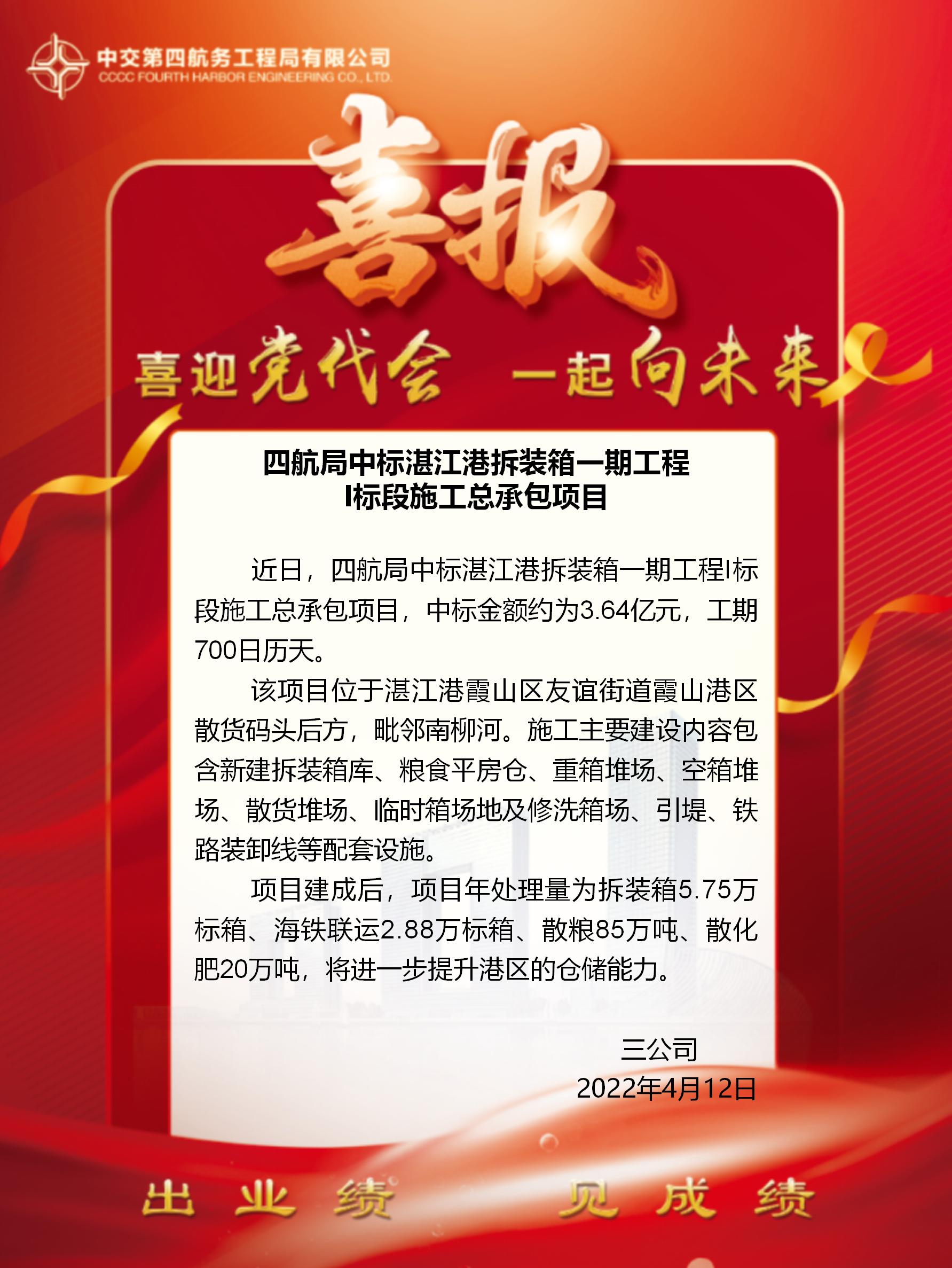 四航局中標(biāo)湛江港拆裝箱一期工程I標(biāo)段施工總承包項目