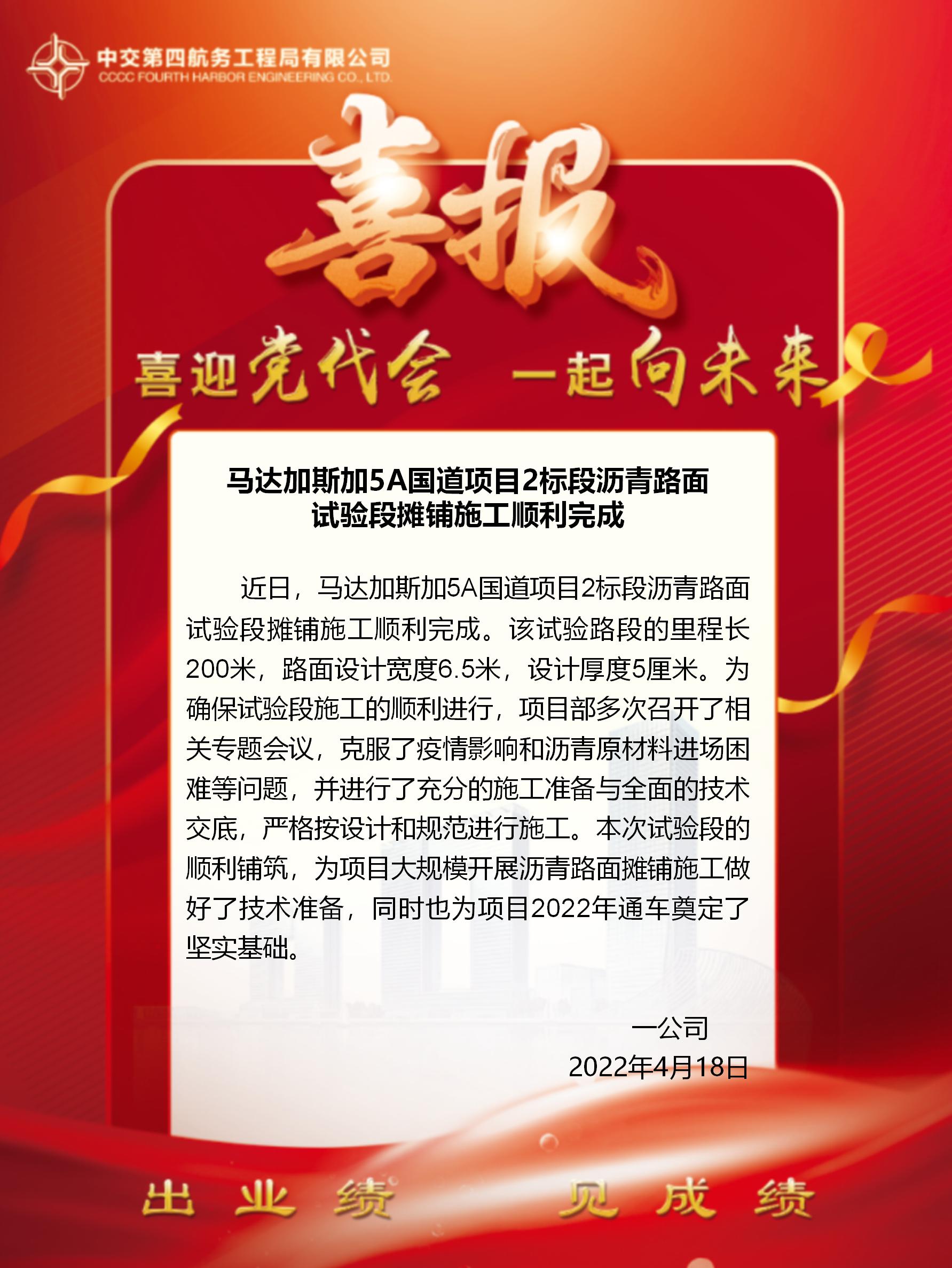 馬達(dá)加斯加5A國道項(xiàng)目2標(biāo)段瀝青路面試驗(yàn)段攤鋪施工順利完成