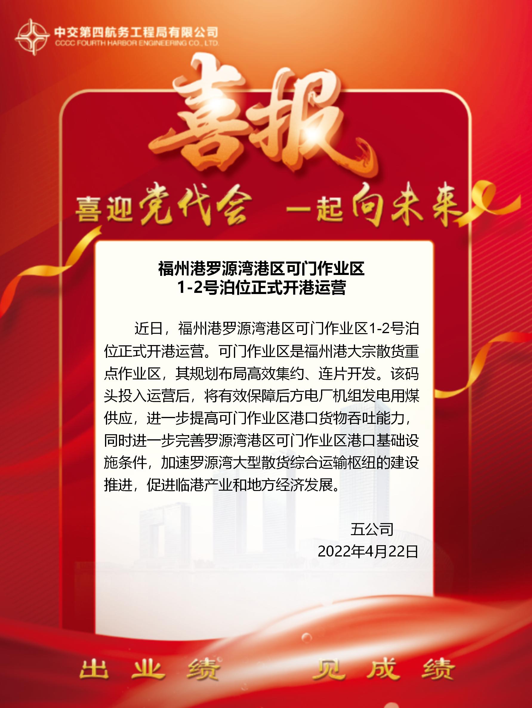 福州港羅源灣港區(qū)可門作業(yè)區(qū)1-2號泊位正式開港運營