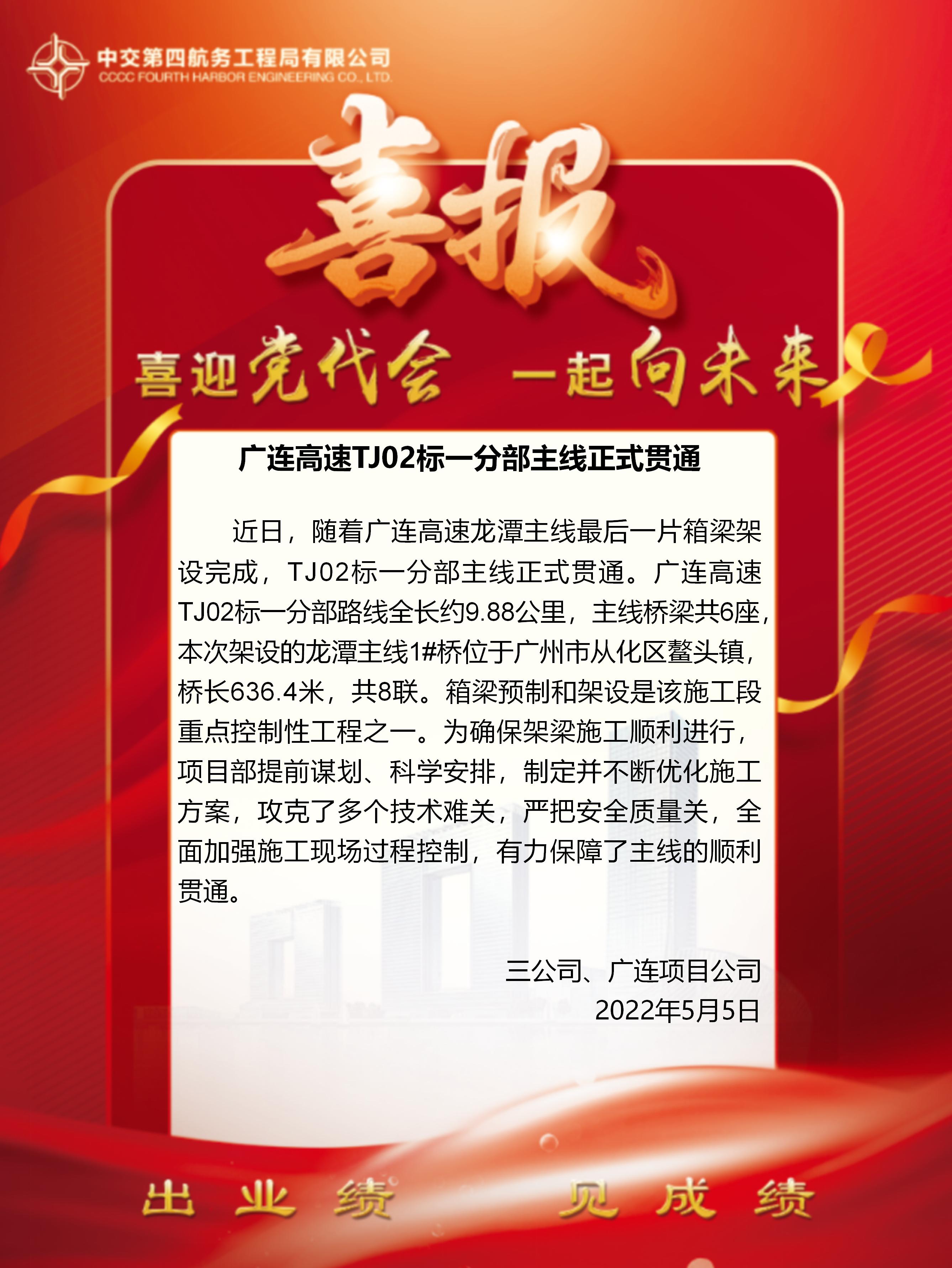 廣連高速TJ02標(biāo)一分部主線正式貫通