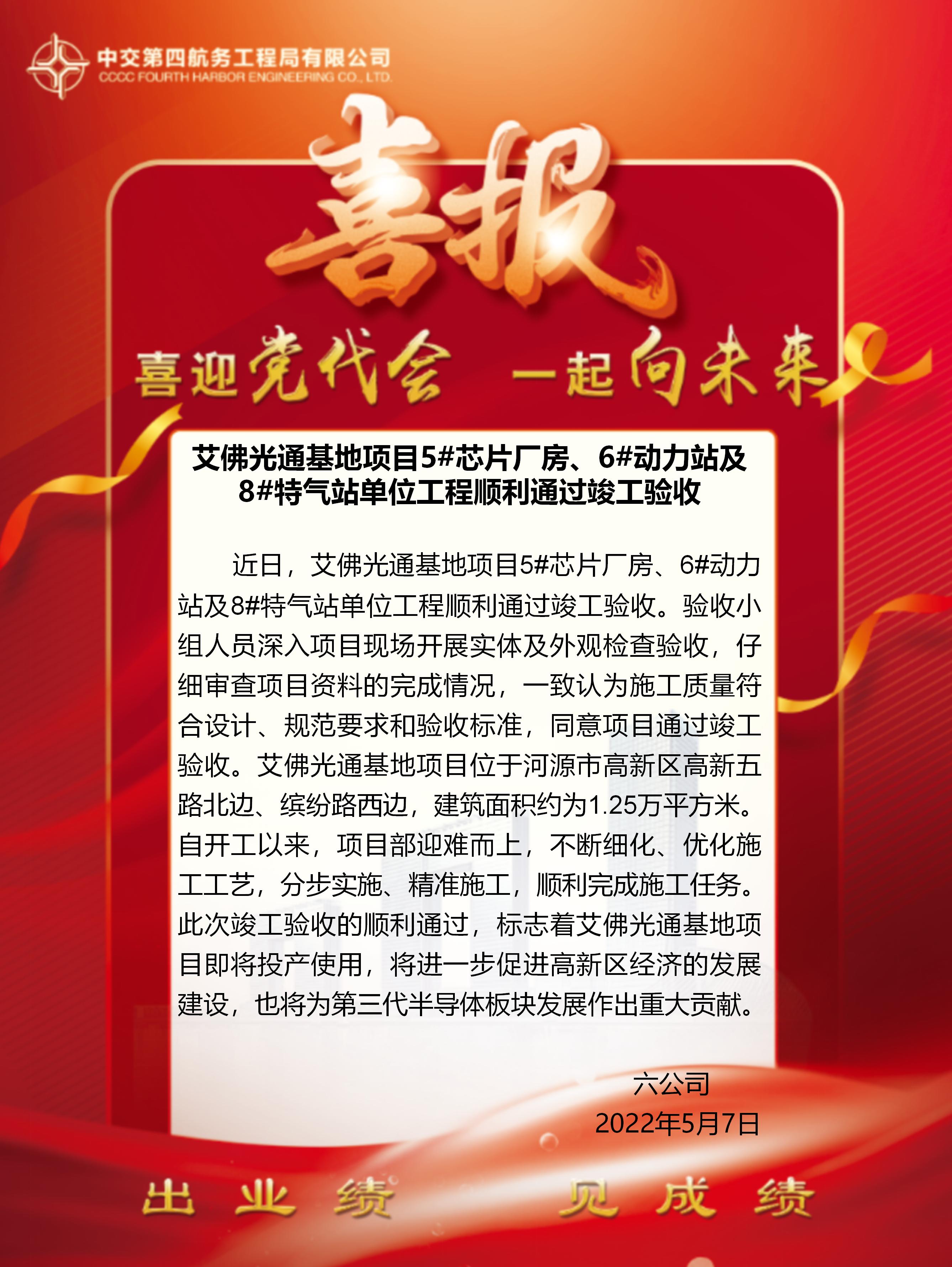 艾佛光通基地項(xiàng)目5#芯片廠房、6#動力站及8#特氣站單位工程順利通過竣工驗(yàn)收