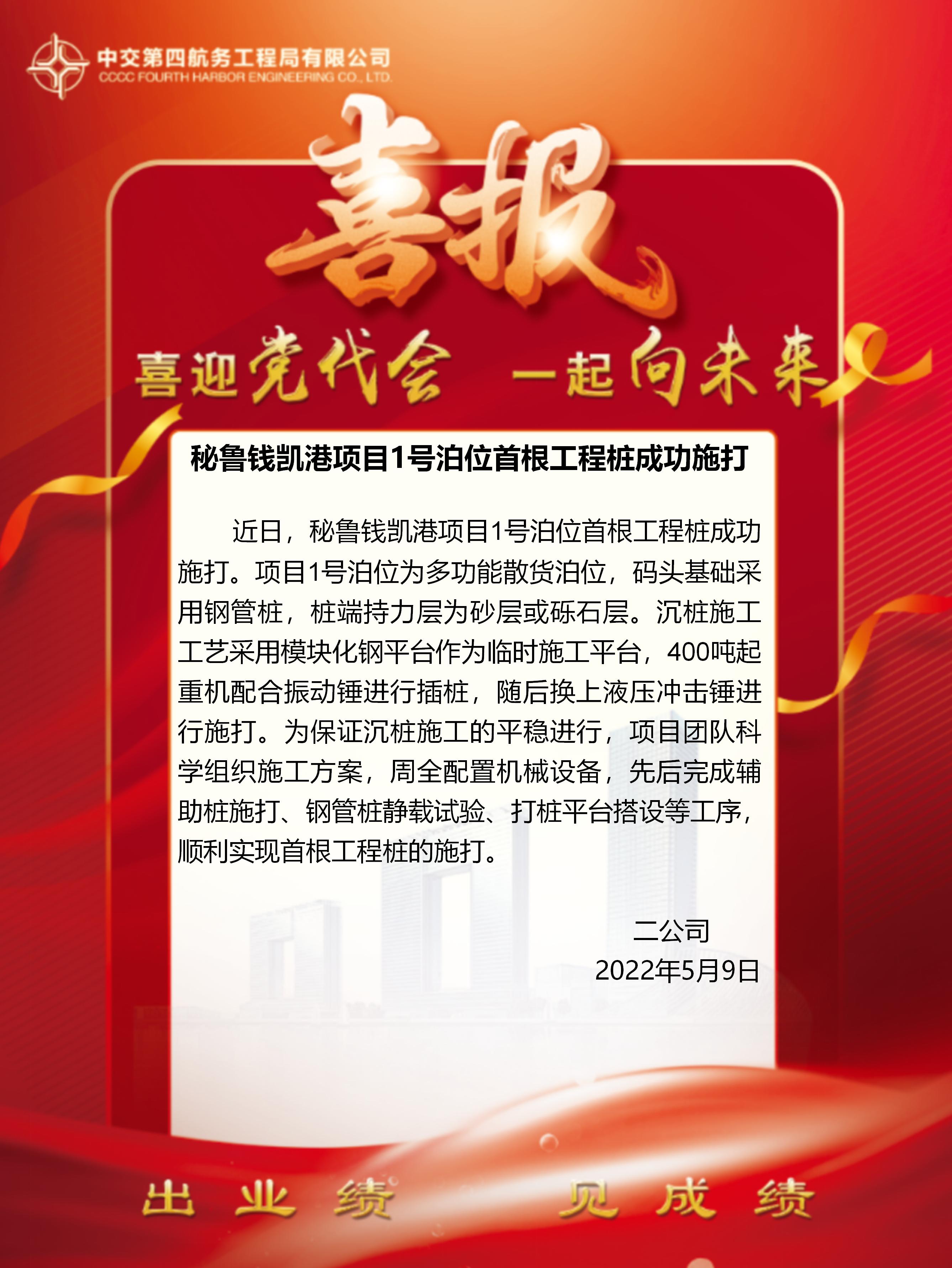 秘魯錢凱港項(xiàng)目1號(hào)泊位首根工程樁成功施打