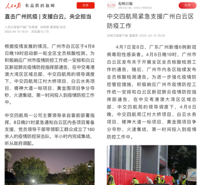 人民日報等多家主流媒體關(guān)注報道四航局參與廣州市疫情防控工作