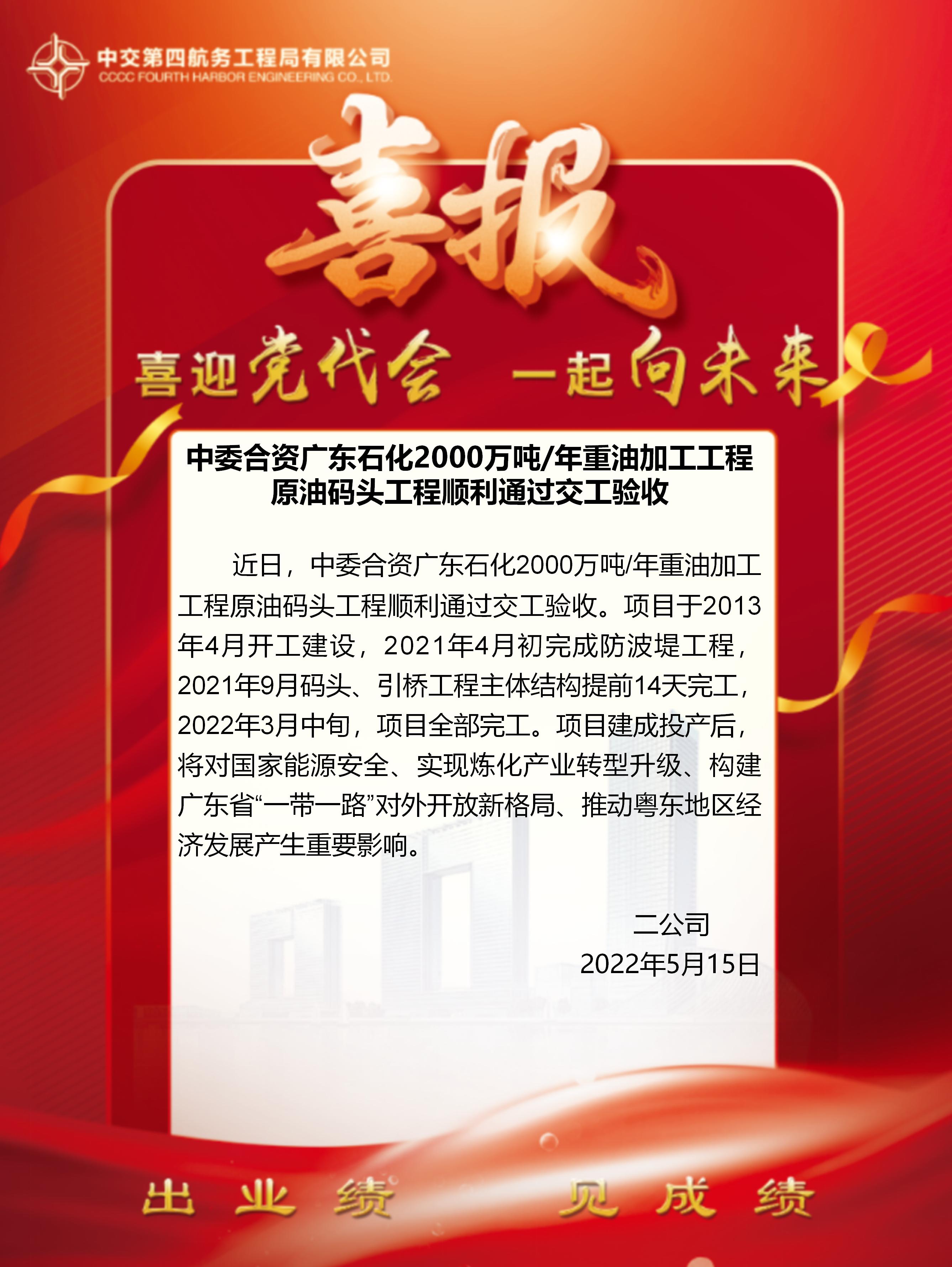 中委合資廣東石化2000萬噸/年重油加工工程原油碼頭工程順利通過交工驗(yàn)收