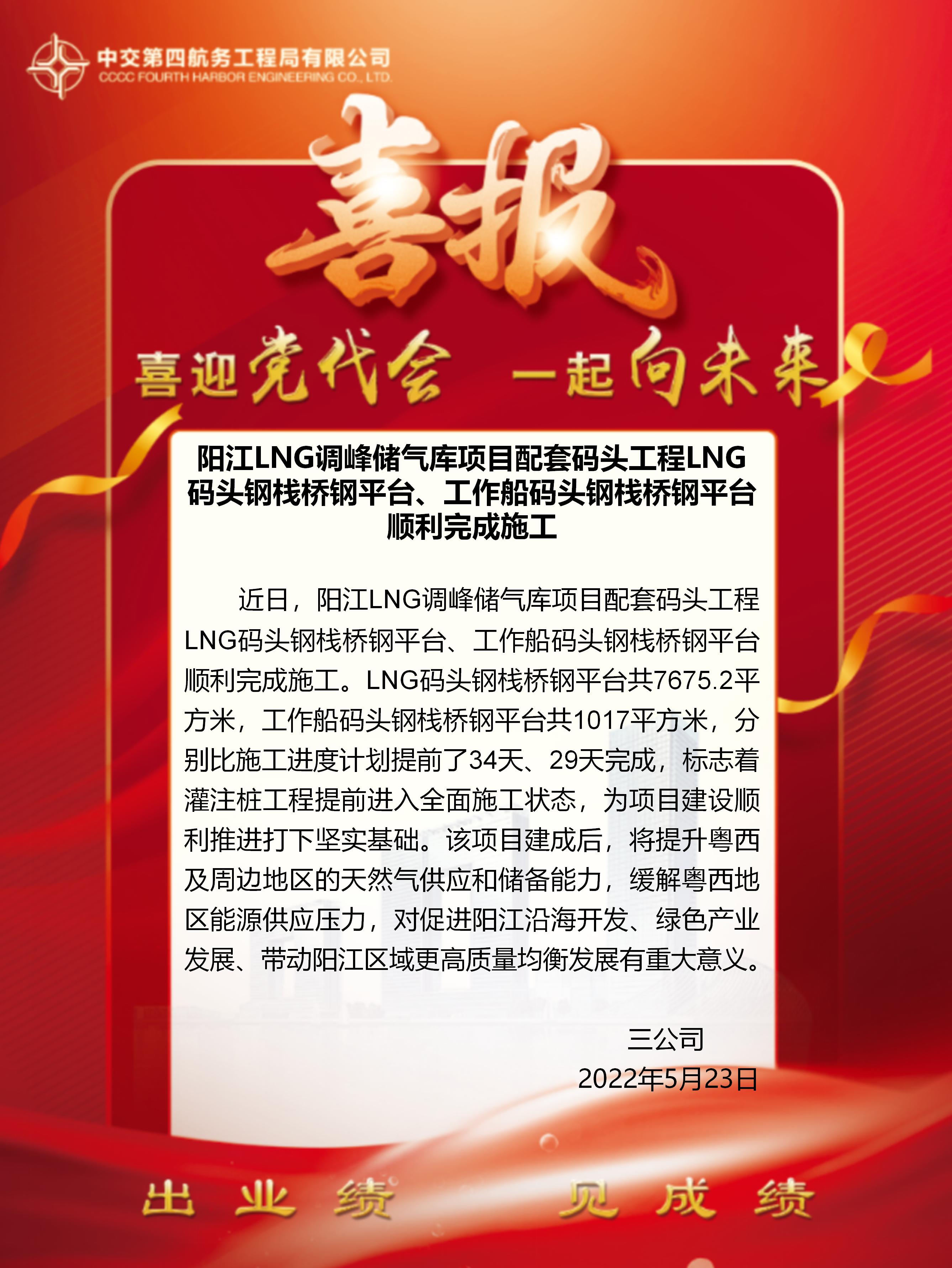 陽江LNG調峰儲氣庫項目配套碼頭工程LNG碼頭鋼棧橋鋼平臺、工作船碼頭鋼棧橋鋼平臺順利完成施工