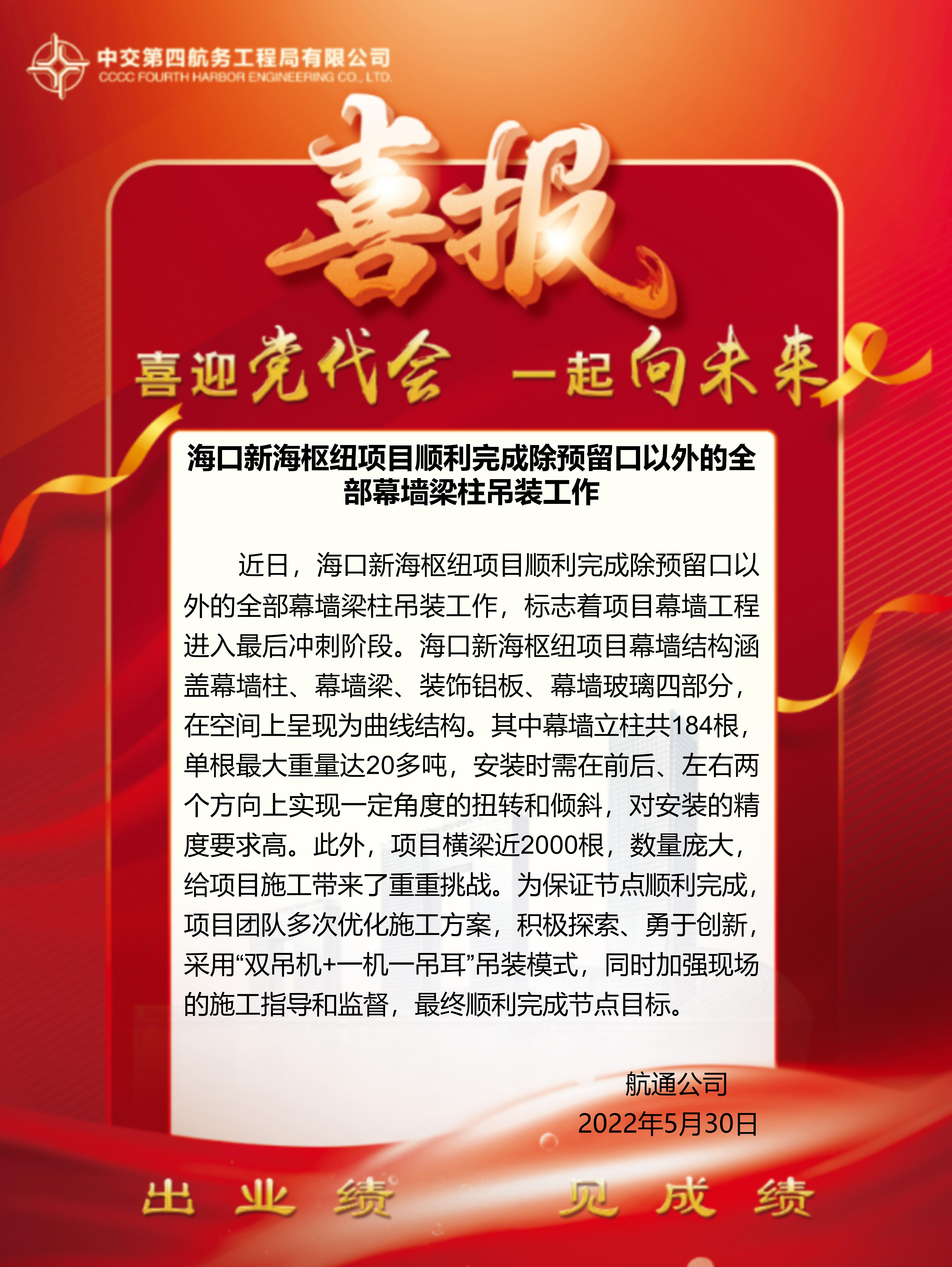 ??谛潞屑~項(xiàng)目順利完成除預(yù)留口以外的全部幕墻梁柱吊裝工作
