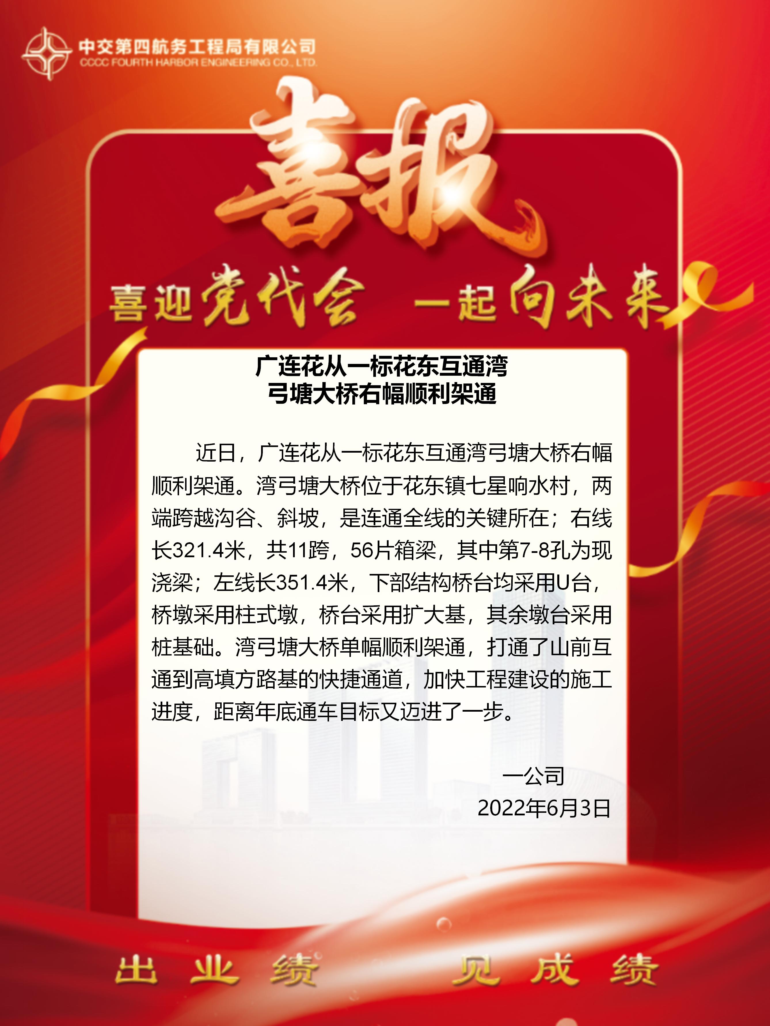 廣連花從一標花東互通灣弓塘大橋右幅順利架通