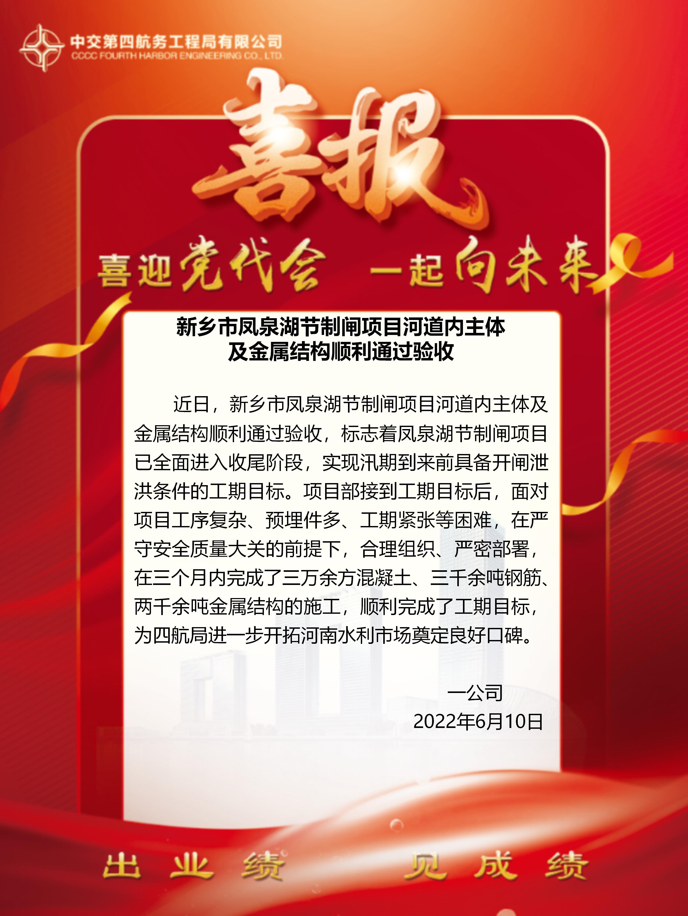 新鄉(xiāng)市鳳泉湖節(jié)制閘項目河道內(nèi)主體及金屬結(jié)構(gòu)順利通過驗收