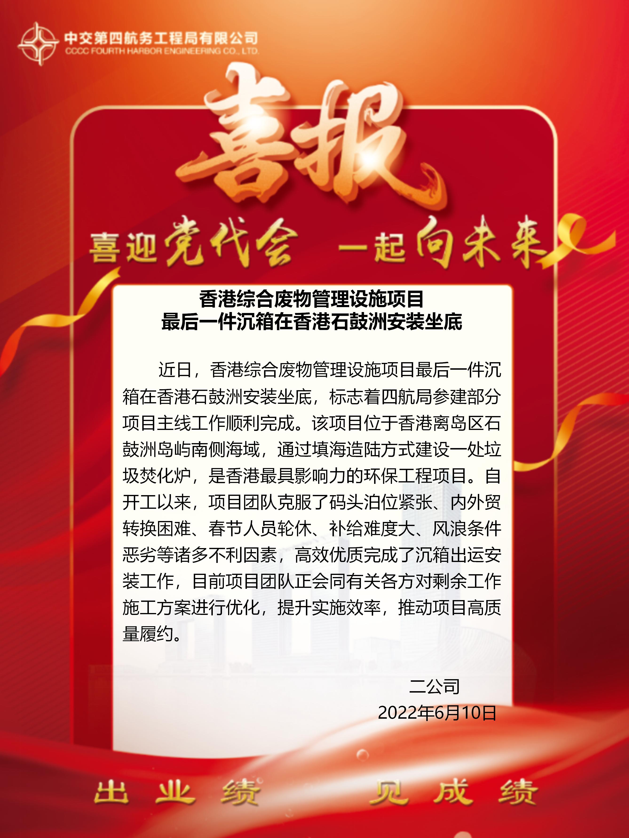 香港綜合廢物管理設(shè)施項(xiàng)目最后一件沉箱在香港石鼓洲安裝坐底