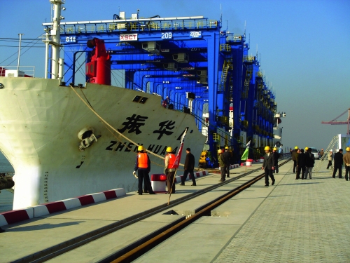 12月22日上午,滿(mǎn)載輪胎式門(mén)吊的"振華4號(hào)"輪船成功靠泊由福州分公司承建的廈門(mén)嵩嶼港區(qū)1#泊位,標(biāo)志著該泊位建成投產(chǎn)。