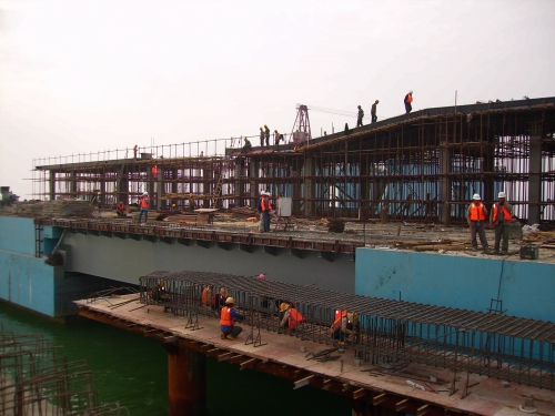 三公司承建的防城港電廠碼頭上部結(jié)構(gòu)已經(jīng)完成,圍堰吹填、護(hù)岸、碼頭及引橋、循環(huán)引水溝、循環(huán)排水溝、回旋水域及航道疏浚等進(jìn)展順利,總體工程完成90%以上,工程質(zhì)量、安全均在可控狀態(tài),并多次受到業(yè)主、監(jiān)理的表?yè)P(yáng)。