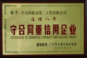 近日,二公司被廣州市工商行政管理局、廣州合同管理協(xié)會評為2006年度"守合同重信用企業(yè)",這是該公司連續(xù)8年獲得此榮譽稱號。