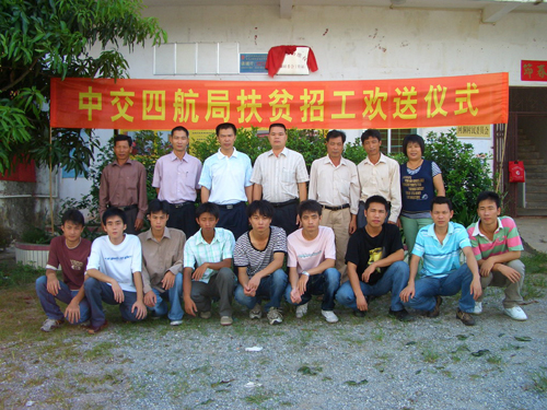 2007年6月18日,中交四航局第三批"十百千萬"駐陽西縣儒洞鎮(zhèn)河洞村工作組在駐點村舉行扶貧招工歡送儀式,熱烈歡送九名當?shù)厍嗄甑綇V州中交四航局本部進行培訓。