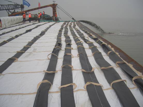 七月三日,三公司洋口港區(qū)接島引堤工程正式開工,項目部在洋口港區(qū)人工島施工現(xiàn)場舉行開工儀式。該工程引堤總長1588.6米,總工期為22個月。開工當(dāng)日,順利鋪放砂肋軟體排1100平方米。