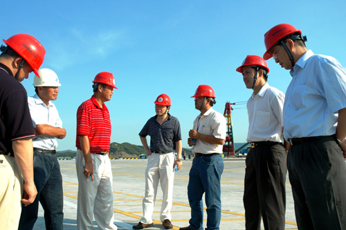 林鳴總工程師聽取了鹽田擴建工程的概況、工程施工進展情況、各種新技術(shù)、新工藝和新材料的使用情況和鹽田港區(qū)域的發(fā)展概貌、擴建工程的現(xiàn)狀及發(fā)展前景。在參觀考察鹽田擴建工程施工作業(yè)現(xiàn)場后,對鹽田擴建工程的施工建設(shè)給予了充分肯定。他說,繁榮的鹽田港給他留下了深刻的印象,為四航人在承建鹽田二期、三期、擴建工程過程中,誠信服務業(yè)主,建設(shè)優(yōu)質(zhì)高效品牌工程,不斷超越不斷進步感到自豪和驕傲!感謝四航局鹽田項目部對集團的支持和貢獻!