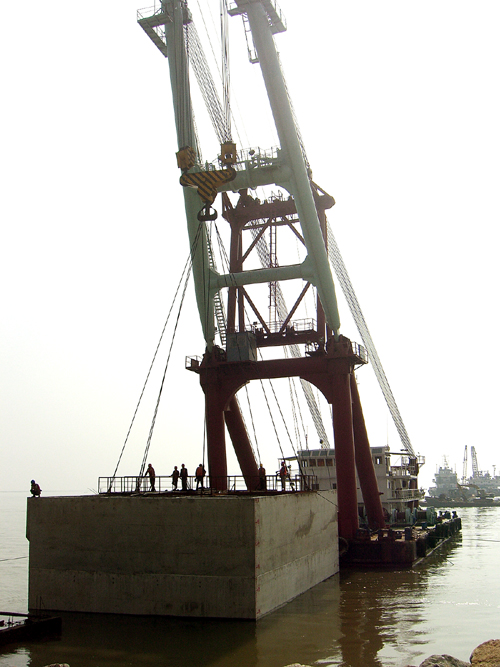 泉州石湖4#泊位工程為沉箱重力式結構,該項工程共需預制、安裝沉箱18件,均為甲型沉箱,現(xiàn)已預制完成12件。每件沉箱長19.4米,寬13.8米,高19.1米,重約2166噸。