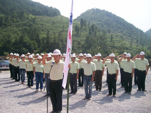在授旗儀式上,青年突擊隊員在隊長姜偉同志的帶領下莊嚴宣誓:大力弘揚滬蓉西精神,積極投身滬蓉西建設,勇于承擔急、難、險、重任務,在項目建設中實現(xiàn)自己的人生價值。立足崗位,科學管理,勤于鉆研,勇于實踐,為業(yè)主創(chuàng)造精品,為企業(yè)創(chuàng)造效益,為社會創(chuàng)造財富,以優(yōu)異成績展示新世紀"四航青年"的新風貌。