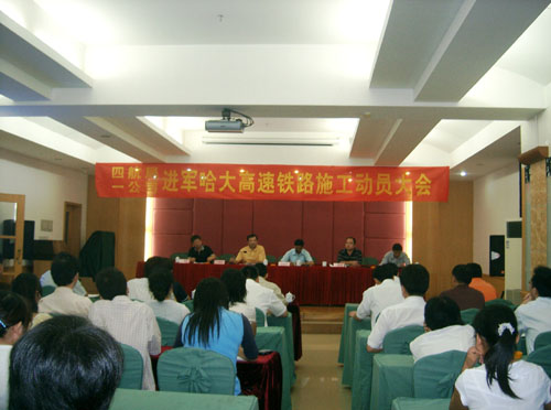 8月16日,一公司召開進軍哈大高速鐵路施工動員大會,四航局黨委副書記阮祥發(fā)、四航局工程業(yè)務(wù)部副經(jīng)理王成功出席會議。阮副書記指出,一公司中標承建哈大高速鐵路是向鐵路市場邁進了實質(zhì)性的一步,得到了鐵道部的認可,為以后京滬鐵路建設(shè)爭取更大的份額奠定了基礎(chǔ),對一公司的意義十分重大。哈大高速鐵路地處高寒地區(qū),工期緊,質(zhì)量要求高,中交集團近10個單位參與施工,是一次艱巨的擂臺賽。阮副書記代表四航局黨委和四航局領(lǐng)導(dǎo)班子對一公司提出了9點工作要求:一是各級領(lǐng)導(dǎo)要高度重視,選派精兵強將進軍哈大工程;二是被選派的人員要珍惜這次機會,加強責(zé)任心,努力完成任務(wù);三是公司各職能本部要發(fā)揮好協(xié)調(diào)服務(wù)的作用;四是要落實全面預(yù)算管理,又好又快地完成施工任務(wù);五是加強分包隊伍管理;六是加強職工隊伍建設(shè),培養(yǎng)好人才;七是發(fā)揚爭第一,創(chuàng)一流的精神,爭當(dāng)排頭兵;八是各級黨組織要發(fā)揮戰(zhàn)斗堡壘作用,弘揚鐵路文化;九是做好后勤保障工作。
