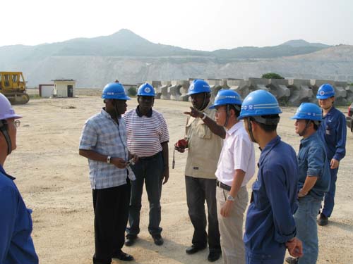 隨后,尼日利亞友人一行在項目部領導的陪同下,參觀了已經竣工的東防護堤工程、南防波堤施工現(xiàn)場和現(xiàn)場預制廠,對預制場內堆放的扭王字塊、柵欄板成品的外觀質量及預制生產線的布置等表示贊賞。