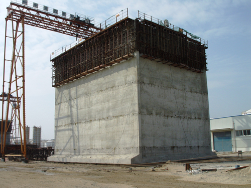 秀嶼8#泊位項目工程沉箱分為3個型號,共14件。其中CX1標(biāo)準(zhǔn)斷面尺寸為19.38米×16.00米×16.10米,單個沉箱重1986噸,共10件;CX2標(biāo)準(zhǔn)斷面尺寸為19.27米×16.00米×16.10米,單個沉箱重1972噸,共2件;CX3標(biāo)準(zhǔn)斷面尺寸為10.50米×11.60米×10.00米,單個沉箱重583噸,共2件。