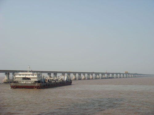 金塘大橋項(xiàng)目部的全體員工在認(rèn)真做好防御臺(tái)風(fēng)、寒潮大風(fēng)的同時(shí),抓住一切有利時(shí)機(jī),見縫插針地組織箱梁安裝工作,在有限的施工條件下發(fā)揮最大的安裝效率,至2007年11月8日止,共已完成箱梁安裝245片,占需安裝箱梁總數(shù)470片的52%。