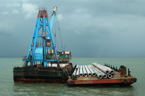 馬來(lái)西亞檳城第二跨海大橋試樁工程開(kāi)始試樁