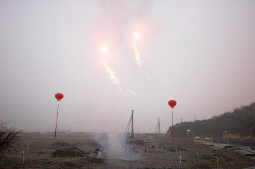 該工程自元旦中標(biāo)以來,項(xiàng)目部當(dāng)即開展迅速有序的籌備工作,克服連日來的大風(fēng)大霧天氣無法通航、物資設(shè)備進(jìn)場受阻、地質(zhì)情況復(fù)雜、施工場地提供有限等困難,在十天內(nèi)完成了前期的施工籌備、臨時(shí)設(shè)施搭建、物資進(jìn)場以及選擇、組織PHC管樁、灌注樁等合作隊(duì)伍的設(shè)備人員進(jìn)場工作。目前各分項(xiàng)工程施工逐漸步入正軌,各項(xiàng)生產(chǎn)工作正有條不紊地展開,趕工高潮即將形成。