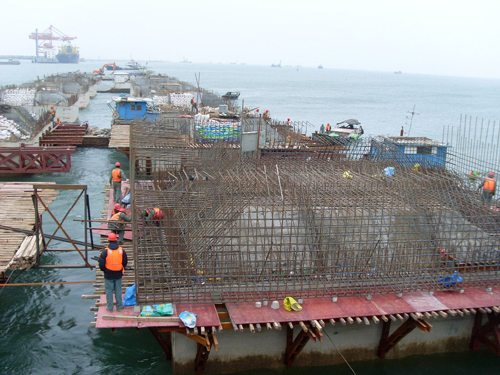 深冬的北部灣畔天寒地凍風(fēng)大浪急,給碼頭工程施工帶來很大影響,但中油欽州石化10萬噸級碼頭工程進(jìn)度依然快速,各分項施工進(jìn)度均超計劃完成,是中油項目30多家施工企業(yè)中進(jìn)度最快的單位,備受業(yè)主和監(jiān)理的好評。