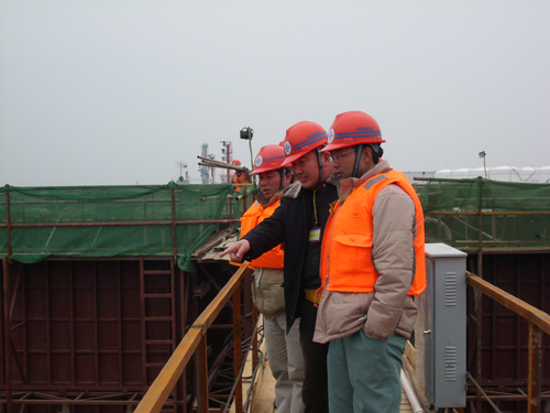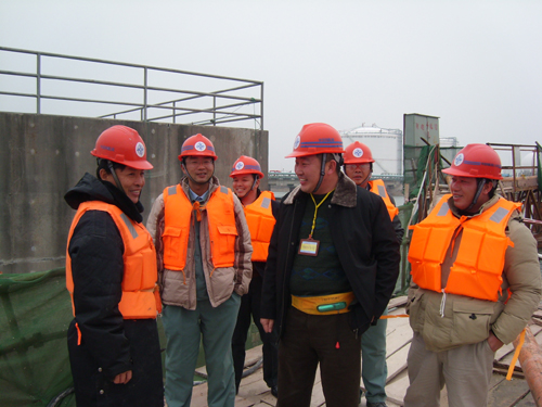 春節(jié)期間,四航局董事長梁卓仁在三公司副總經(jīng)理秦慶生的陪同下,冒著陣陣寒風來到了欽州中石油10萬噸級碼頭工地,親切慰問春節(jié)期間堅守在工地施工的所有員工。梁董事長還登上"防城港"號浮船塢及粵工拖"41"號等船組,拜訪業(yè)主并與業(yè)主領導進行了親切地交談。