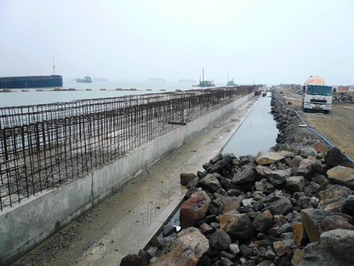 近日,??诟鄱诖a頭項(xiàng)目部接到業(yè)主通知,要求碼頭主體和過渡段工程必須在8月份以前完工,比原計(jì)劃10月份整整提前兩個(gè)月。面對工期的重大調(diào)整,項(xiàng)目部加強(qiáng)施工組織管理,爭分奪秒,加快施工進(jìn)度,掀起了大干高潮。