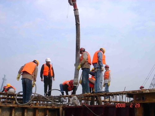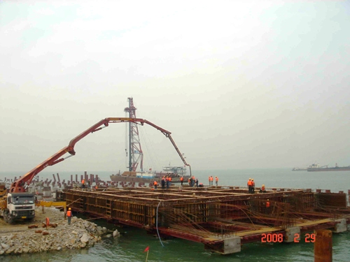 珠海集裝箱碼頭工程開始澆注后樁臺砼