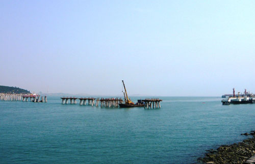 砼方樁施打的提前完成,為后續(xù)工作的開展提供了有利條件。另外,預制空心板也于當天開始張拉作業(yè),第一駁鋼管樁已運抵現(xiàn)場,近日將開始施打。