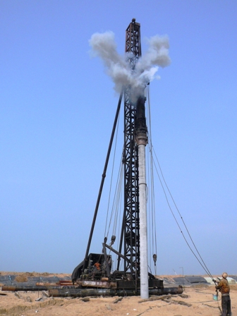 海口港二期碼頭工程后軌道梁PHC樁響錘