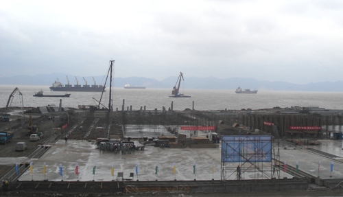 目前,項目部已順利完成60米裝焊平臺、管溝、軌道等節(jié)點工程。樁基工程已經(jīng)完成PHC管樁沉樁1121根共23000多米;船臺架空段按原計劃有條不紊地推進(jìn);在口門段、直立駁岸段內(nèi)外采用反壓棱體及土體加固的方法以加快工作面的形成和船臺主體結(jié)構(gòu)的穩(wěn)定,并密鑼緊鼓地組織實施。