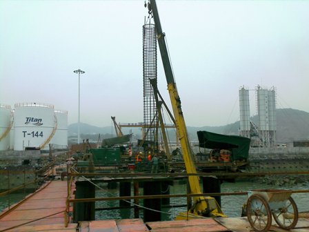 4月13日,福建泰山石化10萬噸級碼頭工程首根灌注樁順利澆注成功,為灌注樁施工全面展開起了一個好頭,更為下道工序現(xiàn)澆墩臺施工打下良好的基礎(chǔ)。