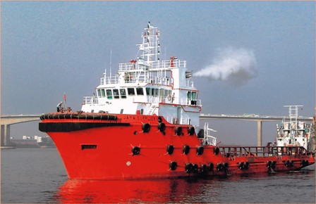 該船長58.7米、寬14.6米、設(shè)計吃水4.5米、載重量1400噸、系柱拖力60噸,主要用于海上石油平臺的拖帶、消防、供應(yīng)和住宿。