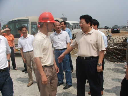 5月3日,南寧市市長陳向群在業(yè)主南寧市城市投資發(fā)展總公司楊榮才總經(jīng)理陪同下到四航局一公司桃源、北大大橋項(xiàng)目部承建的桃源、北大大橋視察檢查工作。陳市長向工作在生產(chǎn)一線并放棄五一休假的四航局的員工表示慰問,同時(shí)對工程的質(zhì)量和進(jìn)度情況表示滿意。陳市長先后查看了桃源大橋西引橋和北大大橋南引橋的拆遷工作完成情況,提出有關(guān)單位要加大工作力度,加強(qiáng)協(xié)作,做好被拆遷戶的說服工作,以確保拆遷工作于5月份內(nèi)全面完成,陳市長同時(shí)對大橋路燈及欄桿的選型提出了寶貴的建議。