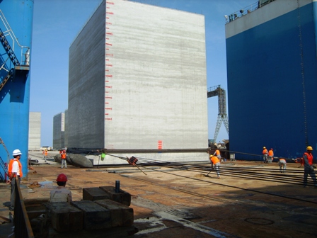 5月4日,三公司華能東方電廠碼頭項(xiàng)目開始出運(yùn)安裝碼頭沉箱,全面掀起碼頭施工高潮。