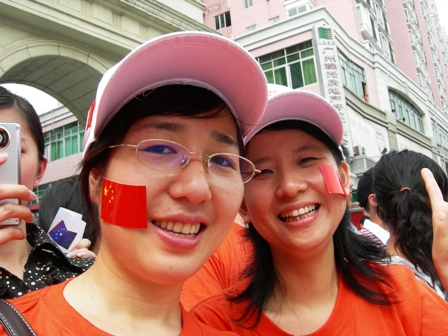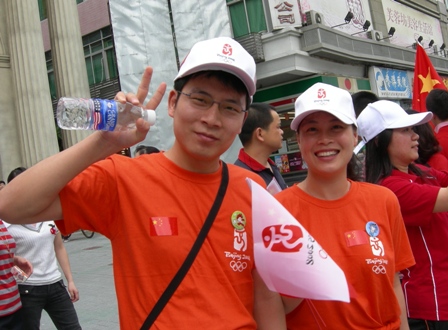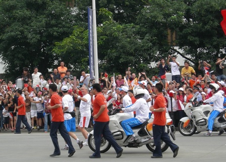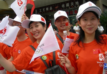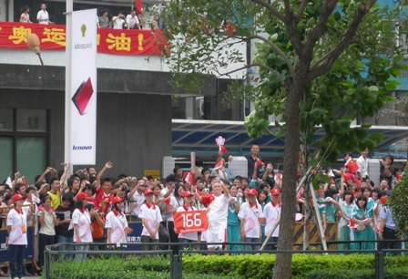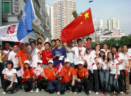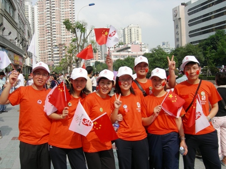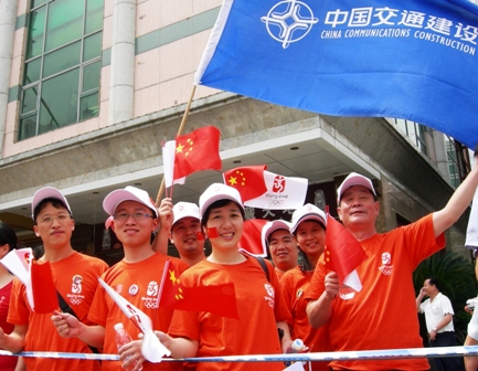 四航局員工為廣州站奧運圣火傳遞加油助威