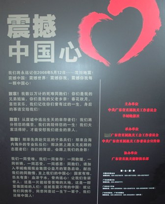 本次圖片展包括地震災(zāi)情、黨和國家領(lǐng)導(dǎo)人親臨災(zāi)區(qū)指揮抗震救災(zāi)、人民子弟兵及廣大醫(yī)護(hù)人員在一線搶險救災(zāi)等生動感人的照片100幅,真實直觀地再現(xiàn)了汶川大地震帶來的巨大災(zāi)難。望著一張張淚流滿面的臉,看著救援人員被碎石瓦礫劃傷的雙手,白發(fā)蒼蒼的老人無助的神情……震撼著每個人的心靈,大家深深感受到中國人民敢于拼搏的昂揚斗志和不屈不撓的精神風(fēng)貌及一方有難,八方支援,川粵同心、患難與共的摯熱情懷,生動詮釋了中國共產(chǎn)黨以人為本、執(zhí)政為民的光輝形象。