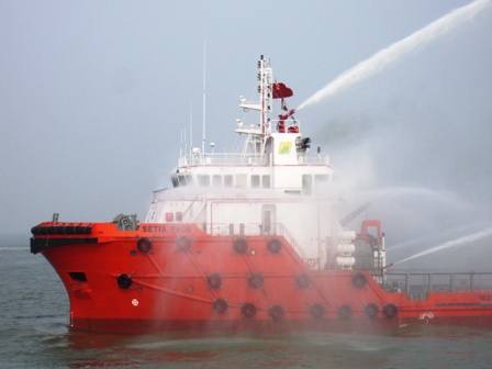 該船長(zhǎng)58.7米、寬14.6米、設(shè)計(jì)吃水4.5米、載重量1400噸、系柱拖力60噸,主要用于海上石油平臺(tái)的拖帶、消防、供應(yīng)和住宿。